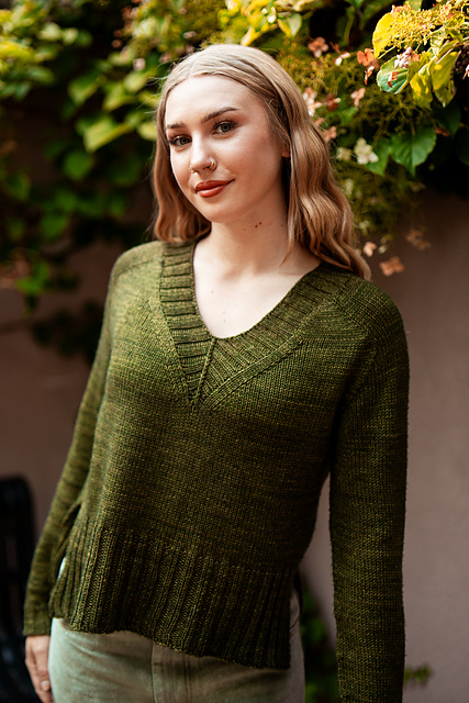 The Pressed Flowers design series by Amy Christoffers has taken the form of a hat, cardigan, pullover, and cowl.